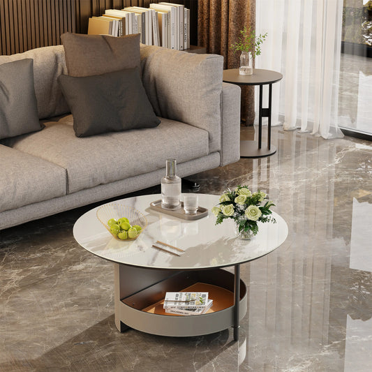 Round Coffee Tables for Living Room with Sintered Stone Top