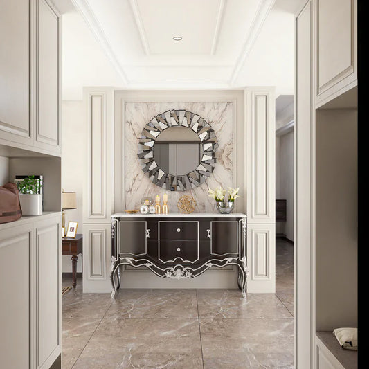 Every crushed diamond mirror in our collection is crafted with precision and care. Our designers use advanced techniques to achieve the unique texture that defines these mirrors, ensuring that each piece is a work of art in its own right. The process involves carefully etching the surface to create an array of tiny, reflective facets, reminiscent of crushed diamonds, that scatter light in beautiful, unexpected ways. The result is a mirror that not only reflects your image but also enhances the ambiance of your space with its sparkling detail.