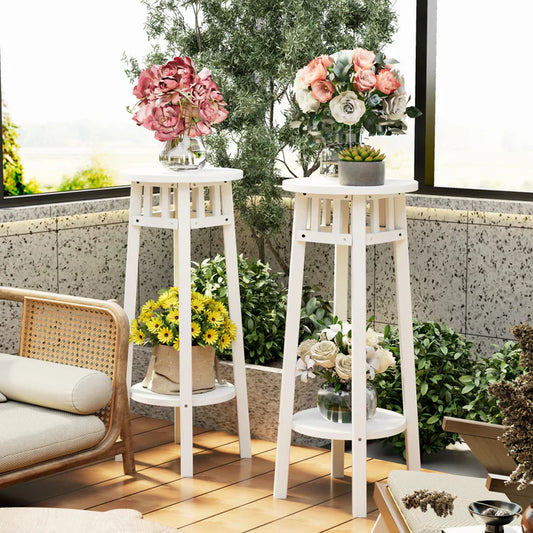 A Set Of 2 Minimalist White Wooden Plant Stands Garden Flower Holder