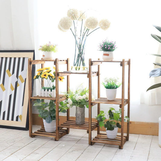 Multiple Flower Pots Holder Wooden Plant Stand - Elevate Garden Space