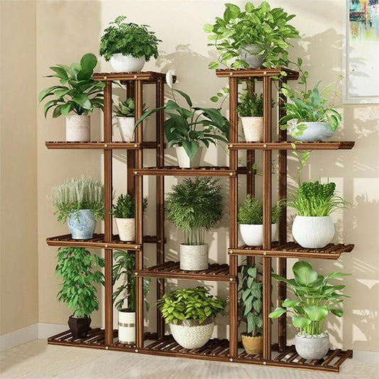 11-Tier Carbonized Wood Plant Stand – Extra-Wide Pot Display for Indoor & Outdoor Spaces
