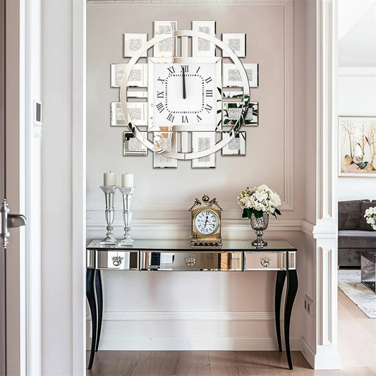 24" Large Silver Mirrored Wall Clock – Modern Decorative Clock for Living Room Wall Décor