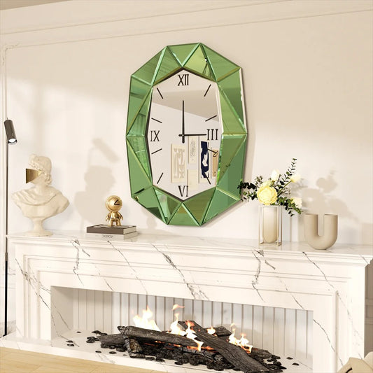 Irregular Mirrored Wall Clock – Beveled Diamond Mirror Clock with Silent Roman Numerals for Home Decor